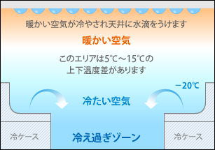 大きな温度差と空気の澱みが結露の原因です。エコシルフィの風の力で解決します。
